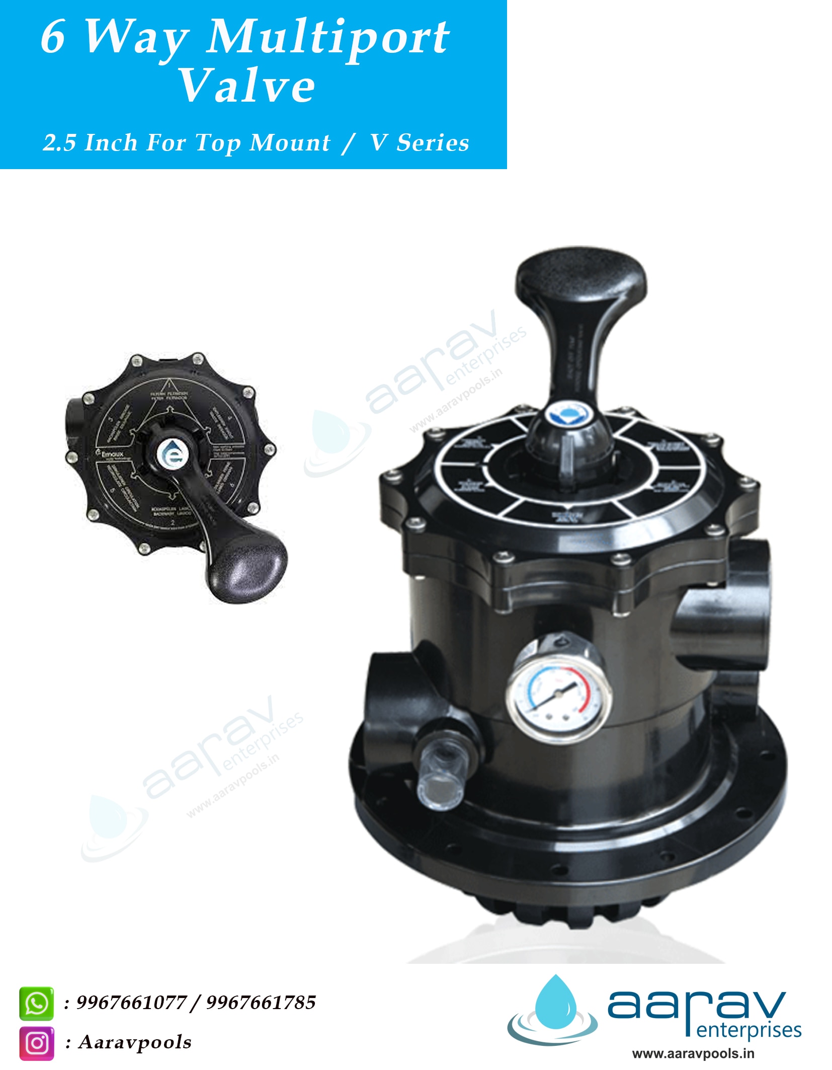 Valves are produced in versions for Top Mount and Side Mount filter designs, and are made of ABS material with heavy duty plastic handle. Depending on filter type, 4-way and 6-way models are available for operating functions to cover all the necessary operations needed in any swimming pools filtration.